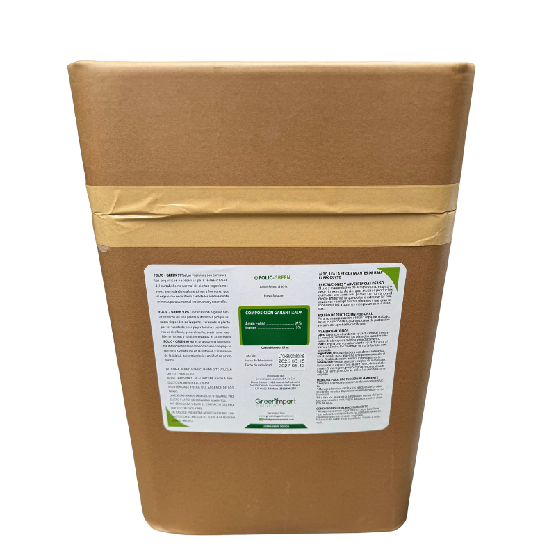 Las raíces son órganos heterotróficos de una planta autotrófica porque las raíces dependen de las partes verdes de la planta por ser fuente de energía y vitaminas. Las Vitaminas se clasifican, generalmente, según sean solubles en grasas y solubles en agua. El ÁCIDO FÓLICO (FOLIC ACID – GREEN 97%) es una vitamina hidrosoluble incluida en la serie conocida como complejo vitamínico B.