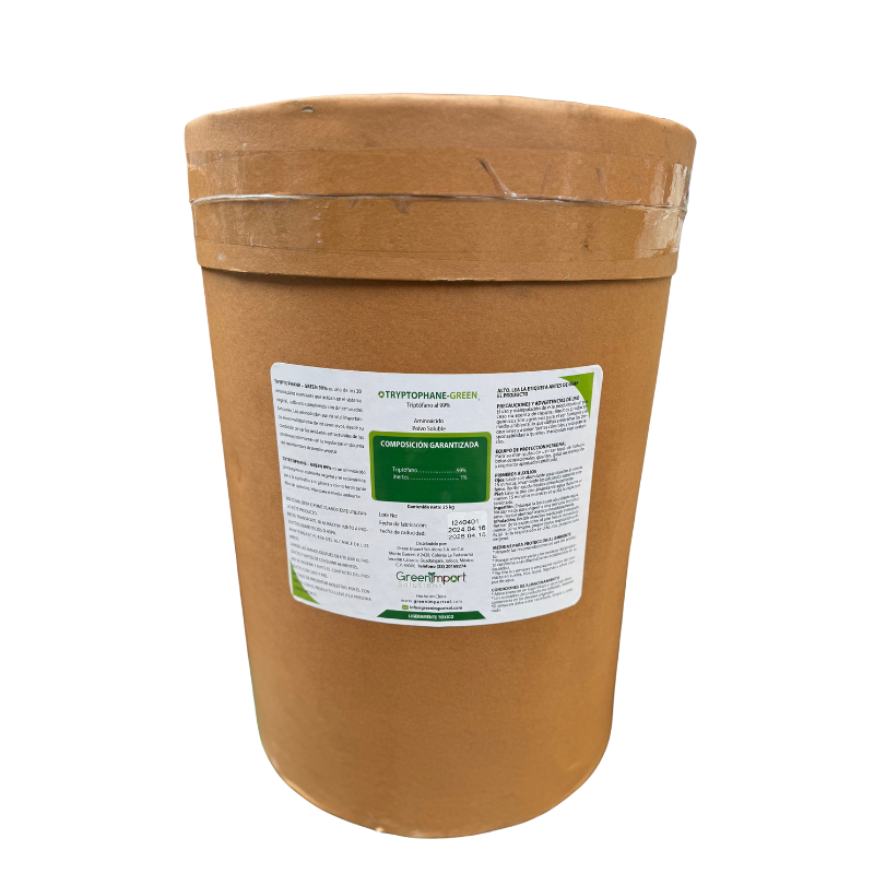 TRIPTÓFANO (TRYPTOPHANE – GREEN 99%) es uno de los 20 aminoácidos esenciales que actúan en el sistema vegetal, cada un cumpliendo con determinadas funciones. Los aminoácidos son de vital importancia en el metabolismo de los seres vivos, desde su condición de ser las unidades estructurales de las proteínas; intervienen en la regulación endógena del crecimiento y desarrollo vegetal. TRIPTÓFANO (TRYPTOPHANE – GREEN 99%) es un aminoácidos proteaginoso, nutriente vegetal y se recomienda para la agricultura orgánica y como fertilizante libre de químicos. Ideal para el medio ambiente. Es absorbido fácil y rápidamente por las plantas. Mejora significativamente el transporte de minerales. Incrementa el crecimiento en número, incluyendo flores y frutos. Es un producto natural sin ningún impacto ambiental.